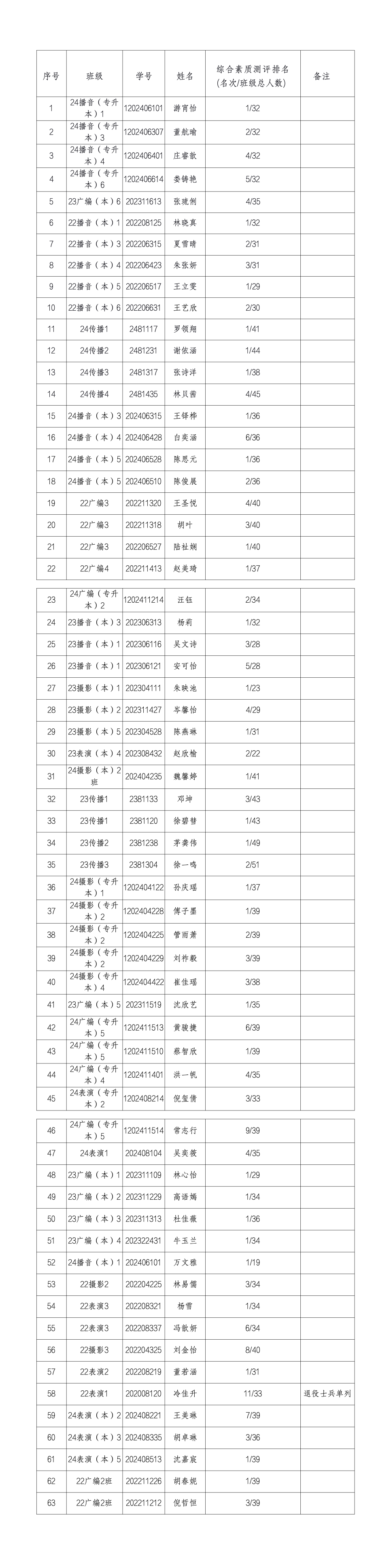 三好学生、优秀学生、优秀学生干部名单公示