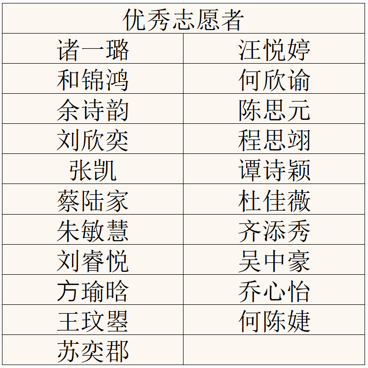 优秀志愿者名单公示
