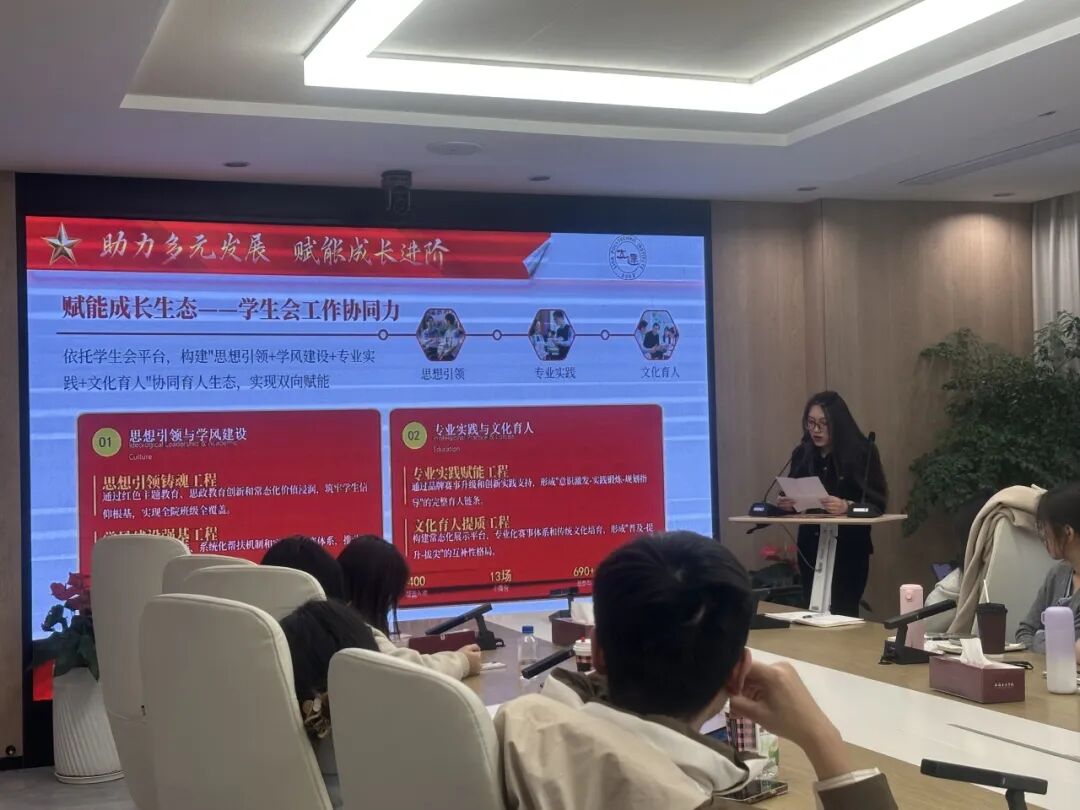 本次年终汇报,各位辅导员结合自身基础工作以及负责条线工作展开,围绕党建与思政、团学组织建设、就业创业指导、心理健康教育、学风建设、评奖评优资助育人、安全管理及日常事务管理等方面,逐一进行总结汇报,每一位老师都以实际行动展示了自己在日常工作中如何守护学生成长,他们以数据、案例与成果展示了传媒学院全年学生工作特色。