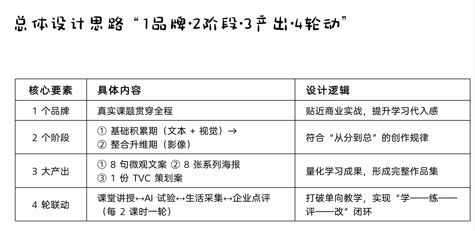 其参赛作品《广告策划》课程教学创新探索,核心在于构建了“理论讲解 + AI实操 + 案例复盘”的三维一体化教学模式。在教学设计中,她们不仅详细阐述了如何将AI工具应用于广告创意生成、市场与用户数据分析、策划方案优化与可视化呈现等关键环节,更注重引导学生理解AI的逻辑与边界,培养其与AI协同工作的“人机共生”思维。课程设计强调从真实的行业需求与项目实践出发,将产教融合的理念贯穿始终,系统梳理并提炼了课程在AI赋能与产教融合两大维度上的创新亮点,最终形成了逻辑完整的教学案例。